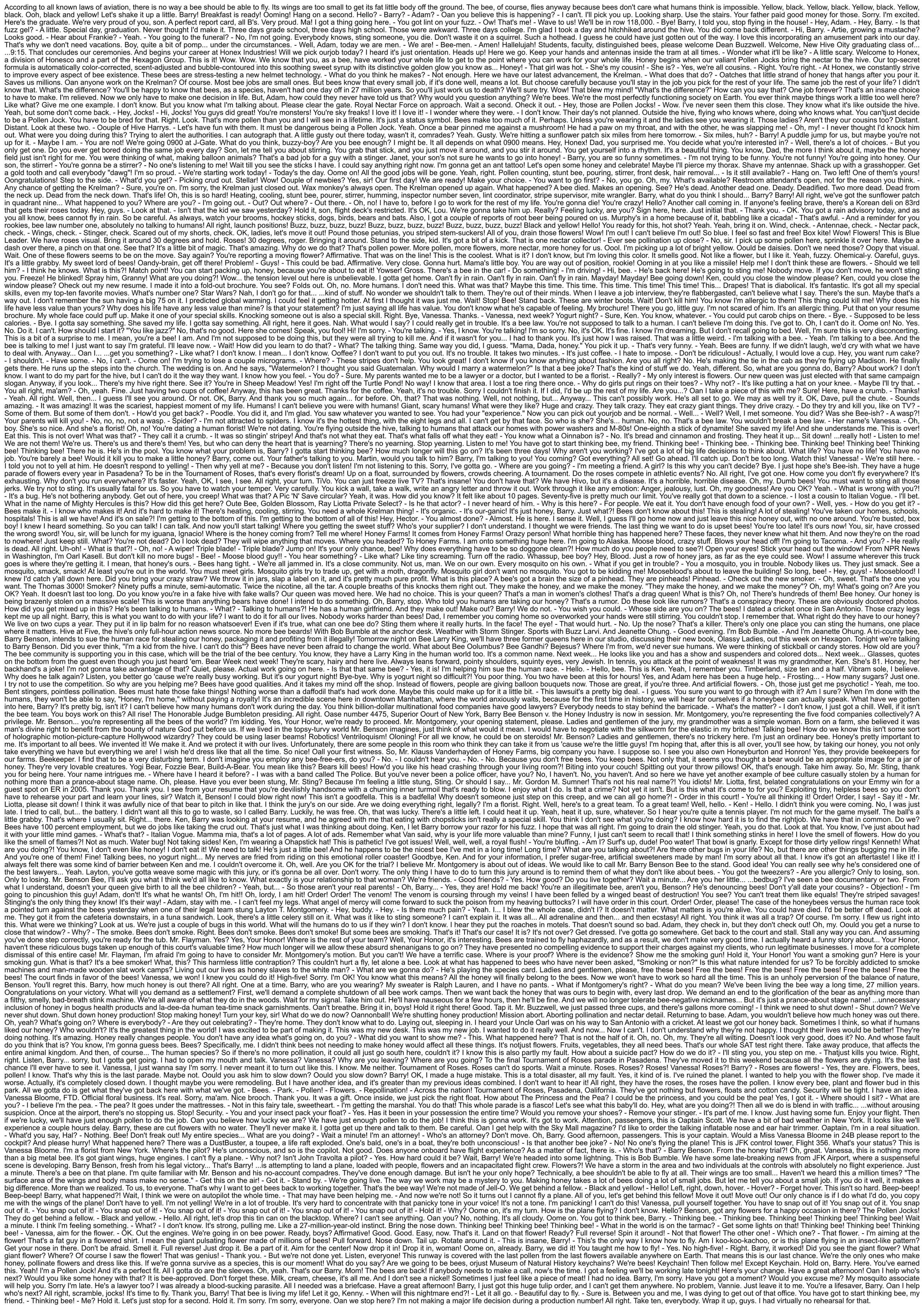 Finally the Bee Movie script is here for all you fans of the Jerry Seinfeld animated movie. The entire bee movie script. The Entire Bee Movie Script.